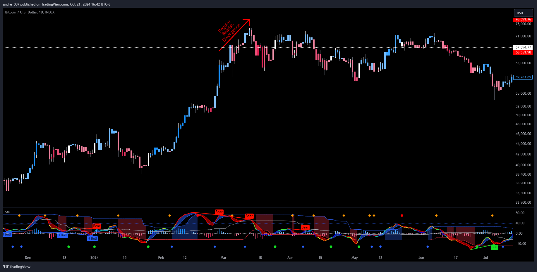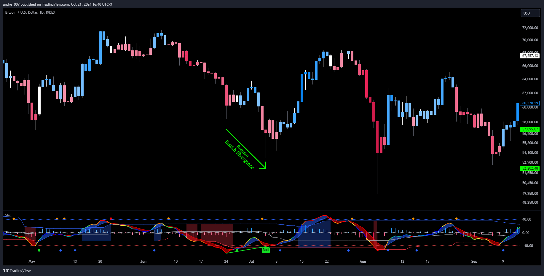 - SMIO (Histogram): Visual representation of momentum divergence between oscillator and signal